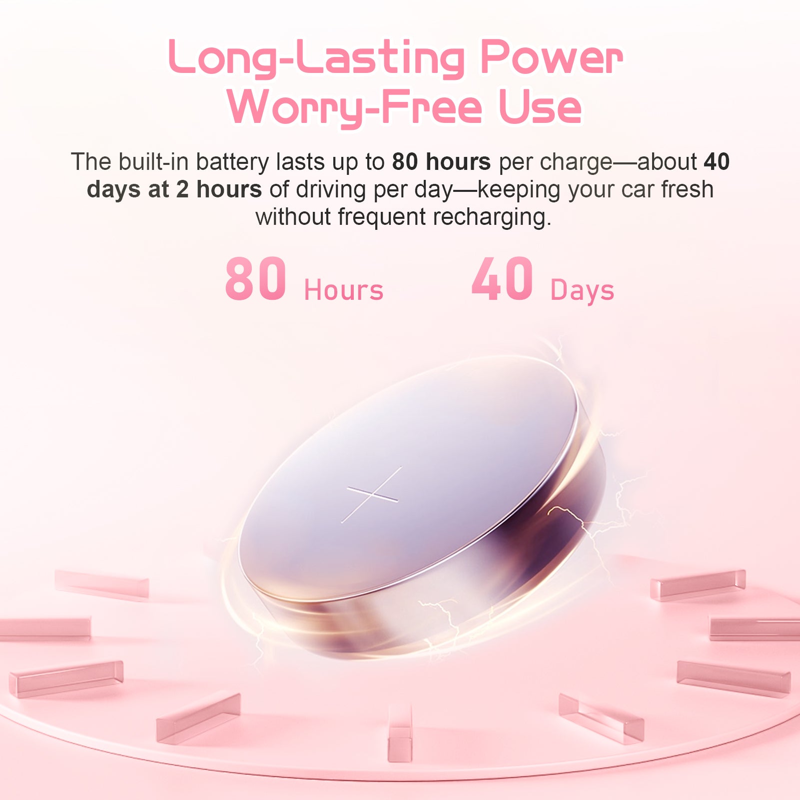 Each fragrance pad lasts up to 40 days, and every product comes with 4 pads to keep your space refreshed for 5 months. You can also soak the pads with your favorite essential oils to create a unique, personalized scent that perfectly matches your mood and style. And you can also search our fragrance pad replacement in our store.