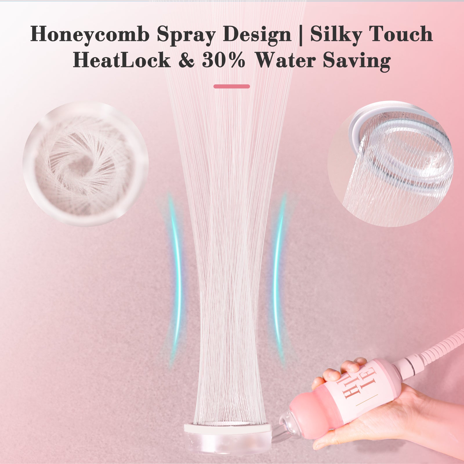 - [Slim Waist Design, HeatLock Tech & 30% Water-Saving] -- Inspired by the iconic "Tower's Slim Waist" design, this innovative showerhead features a honeycomb water flow system that delivers a silky, mist-like spray for ultra-gentle skin contact. The honeycomb structure locks in heat, maintaining stable water temperature even in freezing winters, while achieving 30% water-saving efficiency. With tool-free installation and universal compatibility, it combines artistic elegance, luxurious comfort, and eco-friendly performance—redefining premium bathroom experiences.