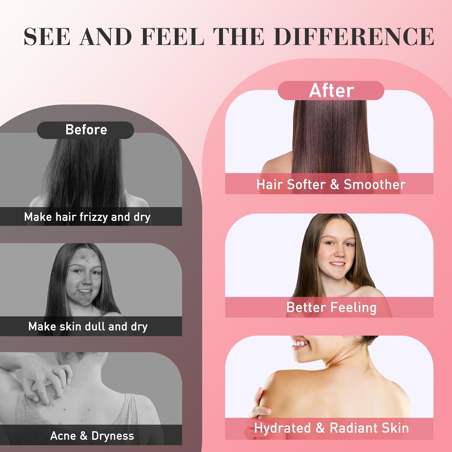 - [Precious Plant Extracts – Hydrated, Radiant Skin & Hair] -- Infused with Jojoba Oil & Coconut Oil, rich in Vitamin E, this lightweight formula nourishes deeply without feeling greasy. With our shower water filter, every drop of water provides a silky, hydrating touch, leaving your skin supple and your hair sleek and luminous—effortlessly elegant beauty in every shower.